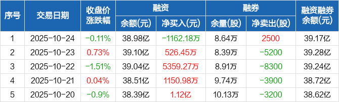 迈瑞医疗:融资净偿还1162.18万元,融资余额38.98亿元(10-24)