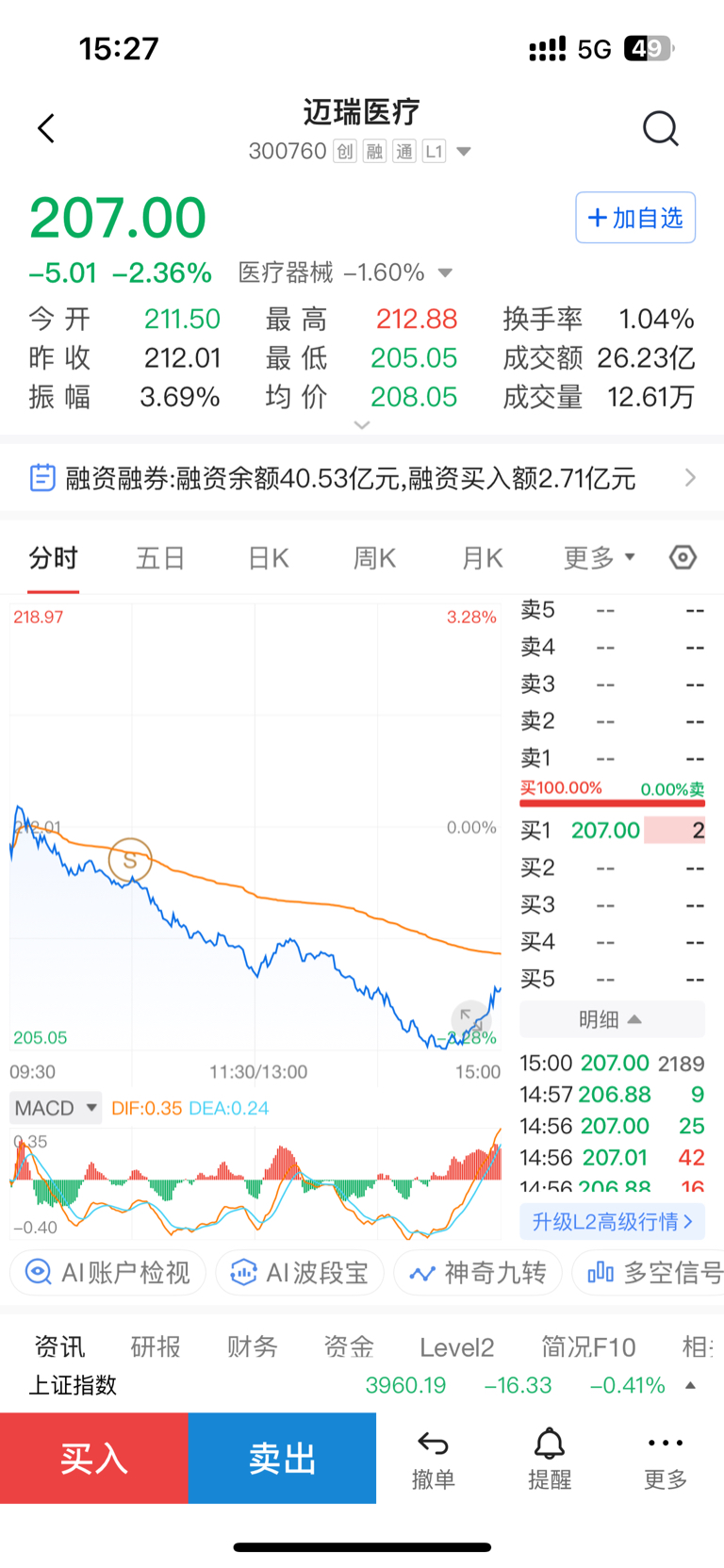 $迈瑞医疗(SZ300760)$ 扛不住了