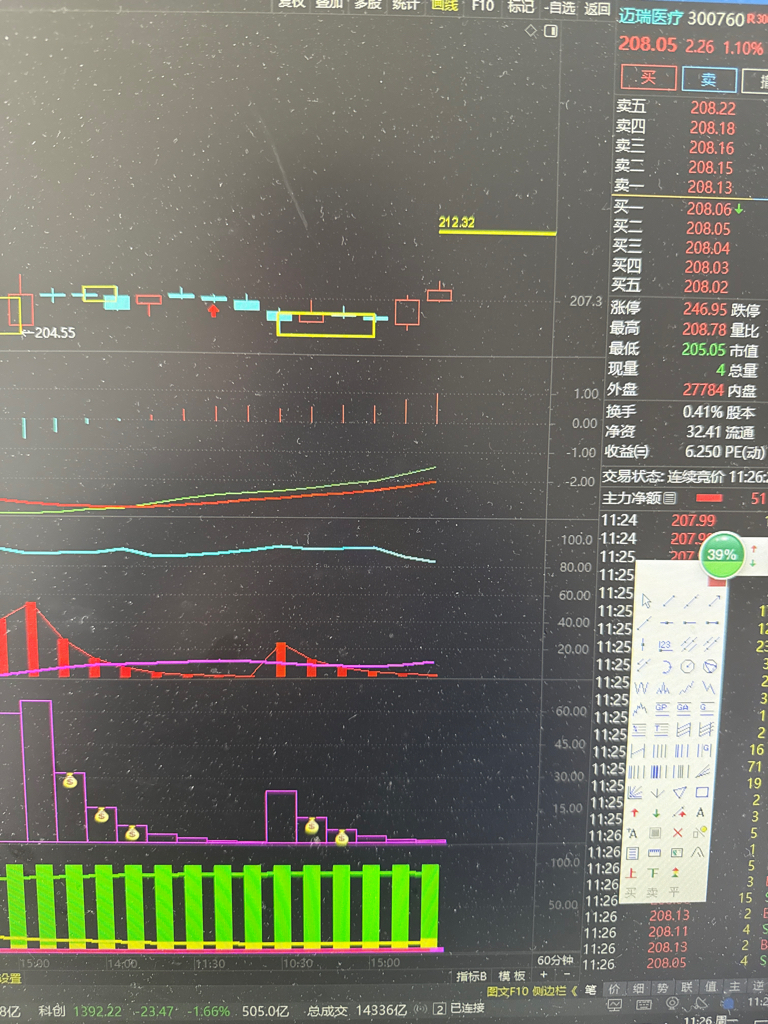 $迈瑞医疗(SZ300760)$ 大瑞瑞下午冲212这个点位了,加油,60分钟不管是如何打压,坚定不移持有不动,一起向240的大瑞瑞冲吧