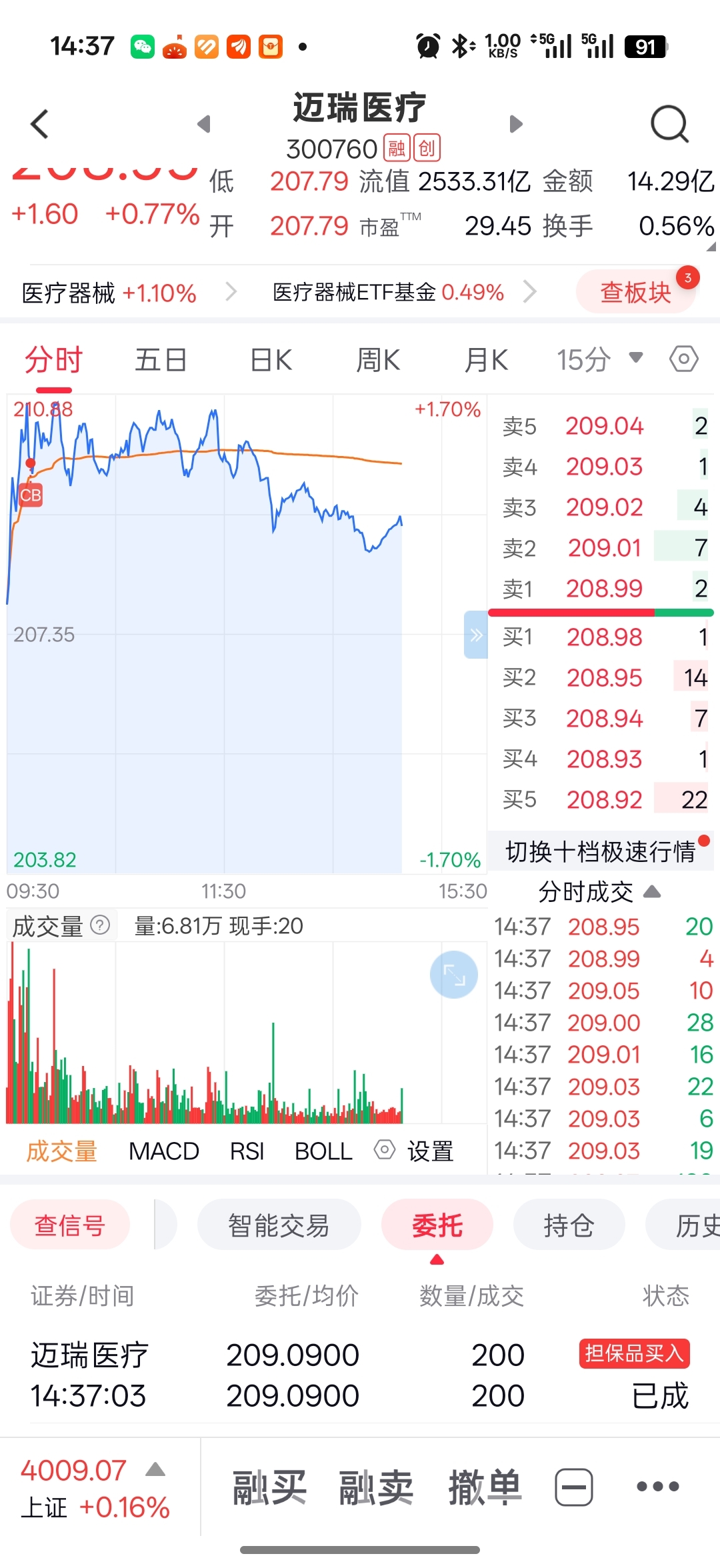 $迈瑞医疗(SZ300760)$ 今天又被套了