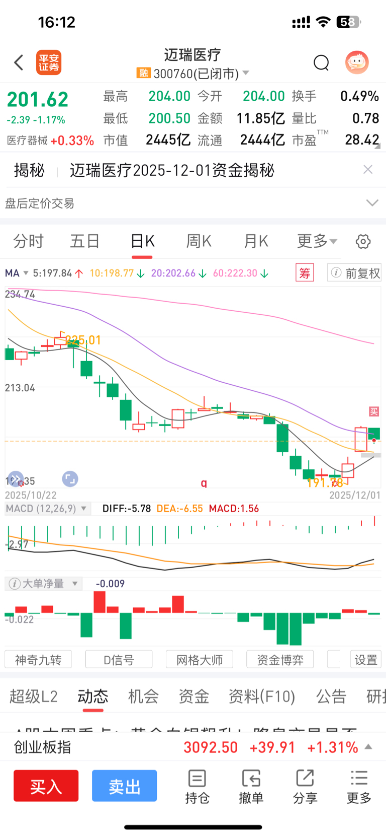 $迈瑞医疗(SZ300760)$ 280我就走