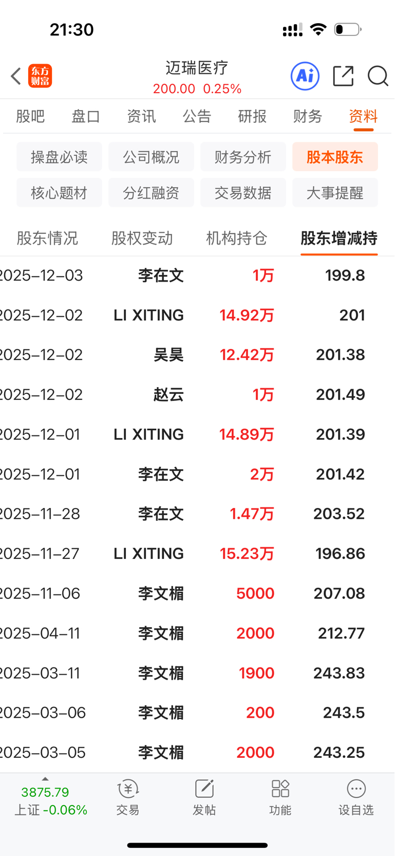 $迈瑞医疗(SZ300760)$ 李在文继续增持