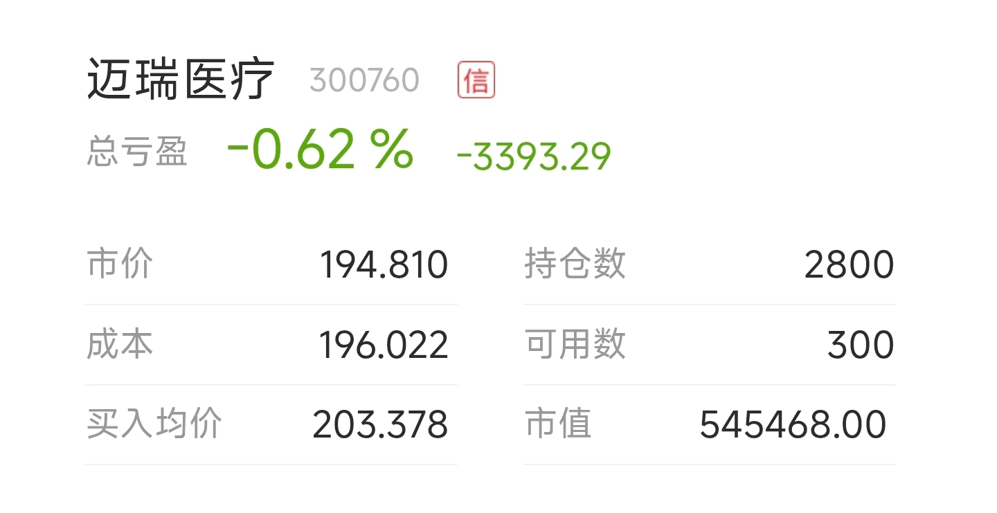 $迈瑞医疗(SZ300760)$ 如大家所愿又绿了,坏消息是,又多买了一些。