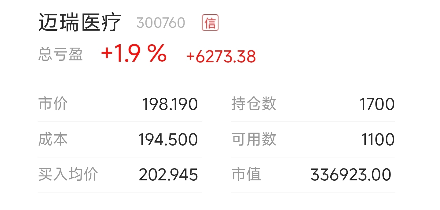 $迈瑞医疗(SZ300760)$ 成本越做越低,下周开始坚决不动如山,等到250再说。