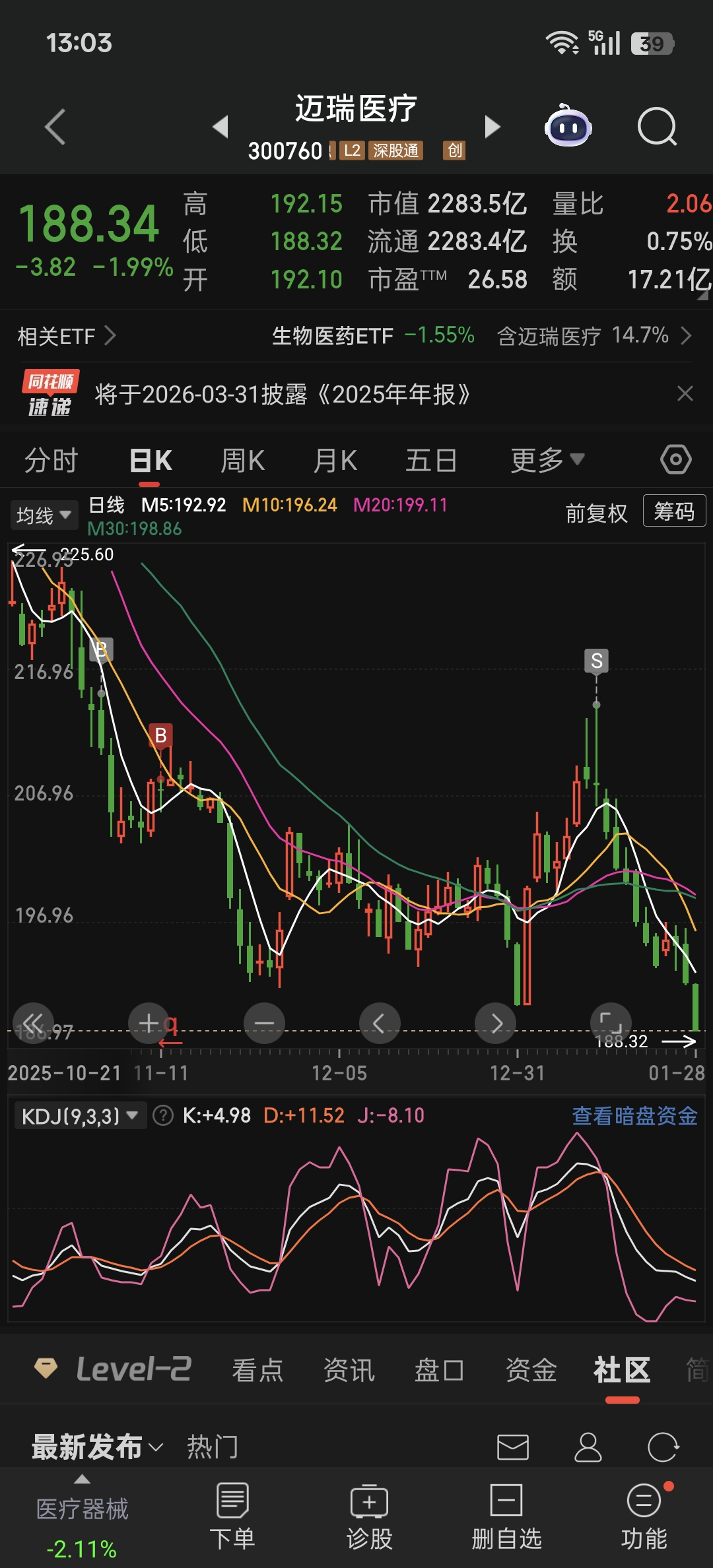 $迈瑞医疗(SZ300760)$ 这股 我当天回本毫不犹豫卖的原因就是 盘太大太大 大涨需要所有无数个机构和庄统一战线才有可能涨 第二这股一直新低 根本不知道什么时候是底 第三 一直说等港股上市 才有可能涨 另一个200亿市值的医疗股9月份申请到现在还没通过审核 迈瑞11月份才申请 还要等多久?等到了也不一定涨!!