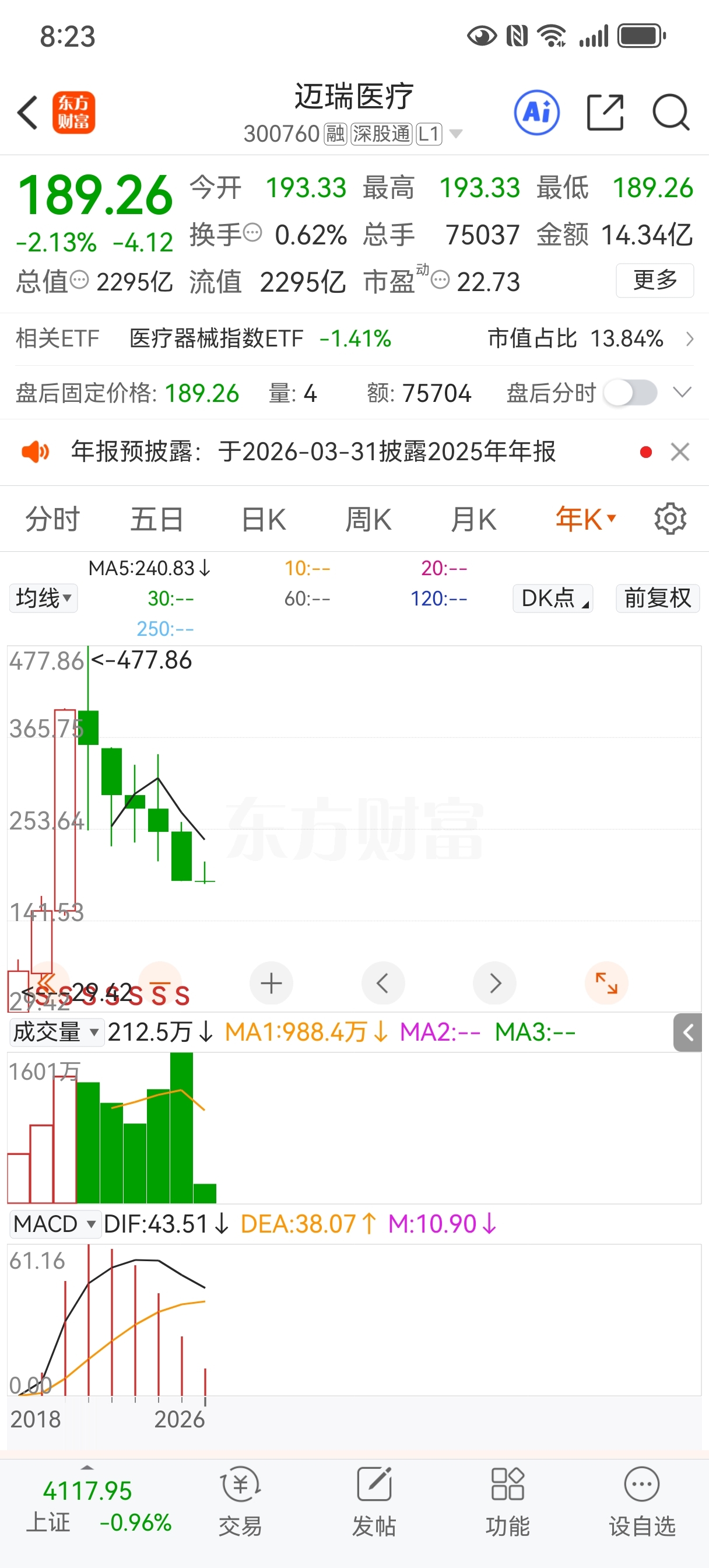 $迈瑞医疗(SZ300760)$ 还要跌几年
