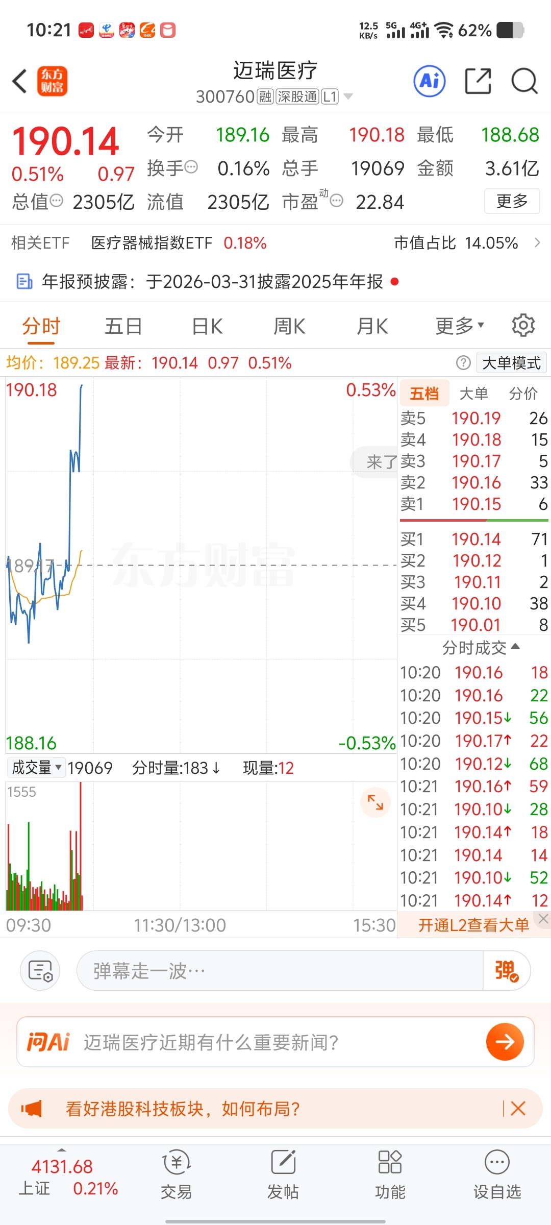 $迈瑞医疗(SZ300760)$ 牛,今天终于有点像样的暴涨