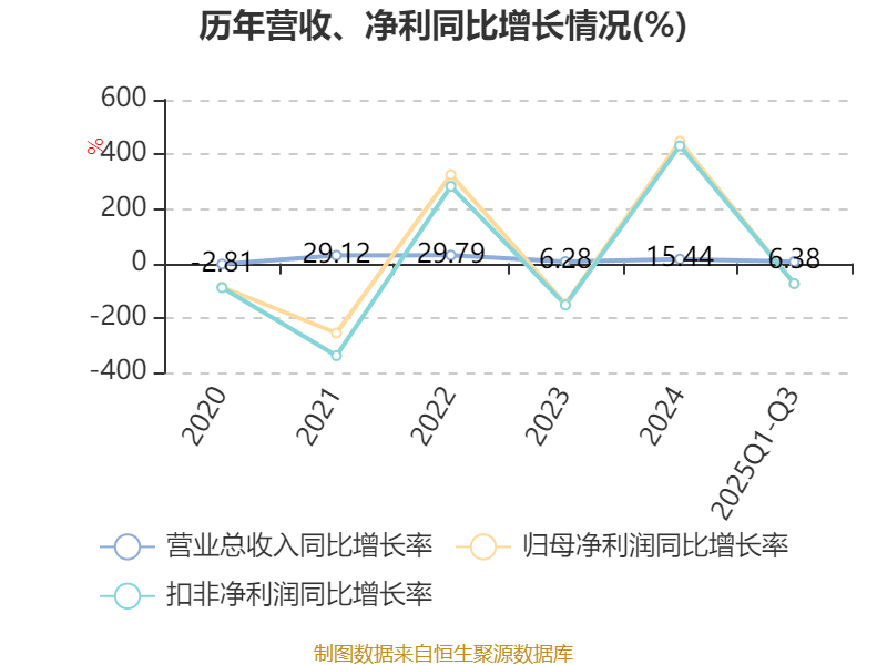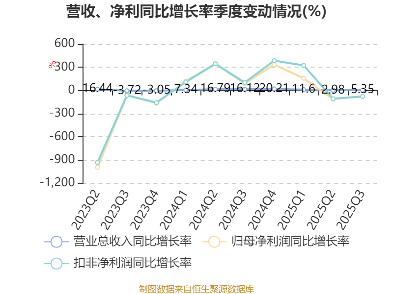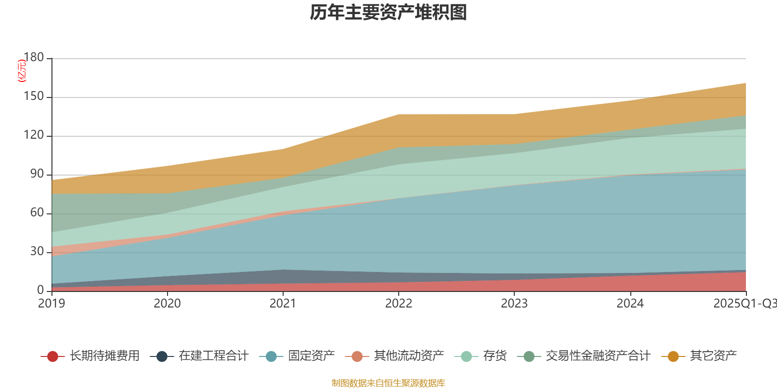 资产重大变化方面,截至2025年三季度末,公司固定资产较上年末增加2.65%,占公司总资产比重下降3.07个百分点;交易性金融资产合计较上年末增加60.49%,占公司总资产比重上升2.05个百分点;货币资金较上年末增加133.6%,占公司总资产比重上升1.42个百分点;长期待摊费用较上年末增加23.47%,占公司总资产比重上升1.05个百分点。