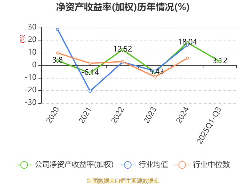 盈利能力方面, 2025年前三季度公司加权平均净资产收益率为3.12%,同比下降10.84个百分点。公司2025年前三季度投入资本回报率为2.71%,较上年同期下降8.26个百分点。