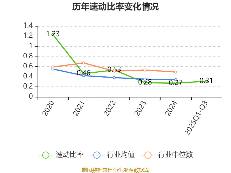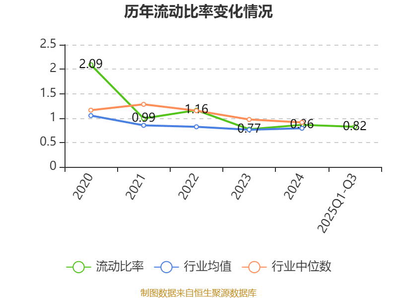 2025年前三季度,公司流动比率为0.82,速动比率为0.31。