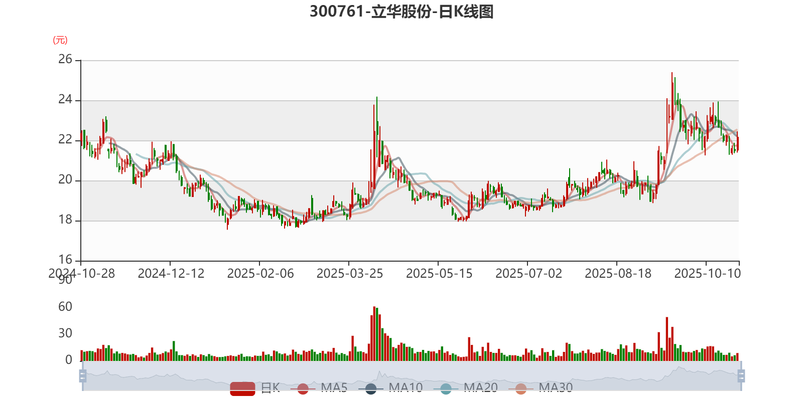 中证智能财讯立华股份(300761)10月28日披露2025年第三季度报告。前三季度公司实现营业总收入134.93亿元,同比增长6.38%;归母净利润2.87亿元,同比下降75.27%;扣非净利润2.92亿元,同比下降74.36%;经营活动产生的现金流量净额为13.41亿元,同比下降25.75%;报告期内,立华股份基本每股收益为0.3452元,加权平均净资产收益率为3.12%。