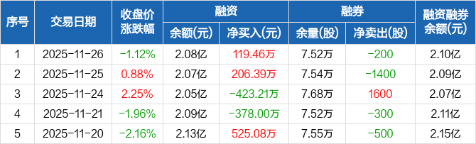 立华股份:融资净买入119.46万元,融资余额2.08亿元(11-26)