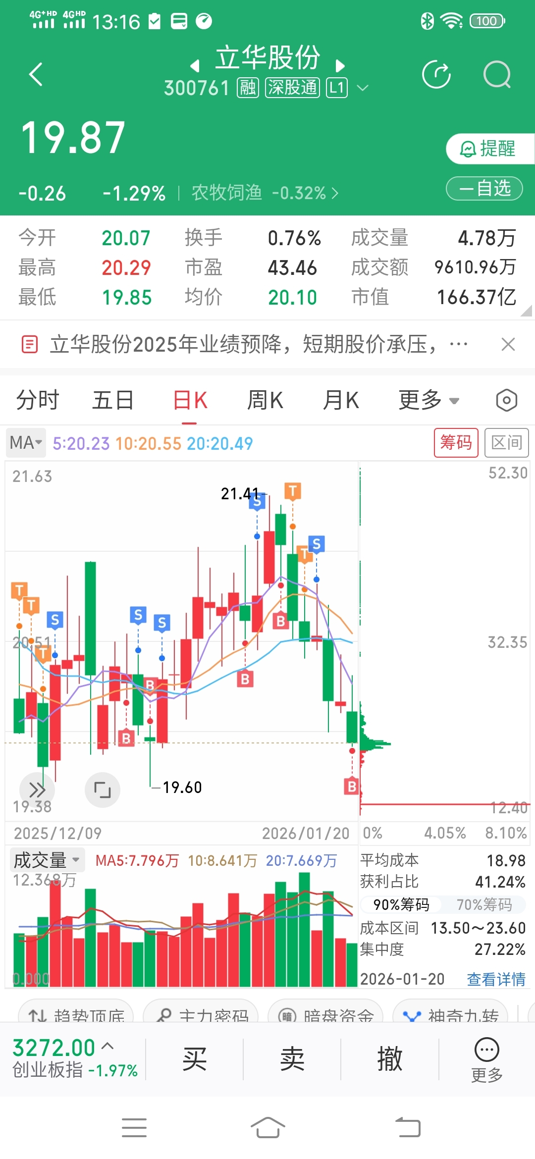 $立华股份(SZ300761)$ 回来了,捡点便宜筹码,过年吃鸡就靠你了