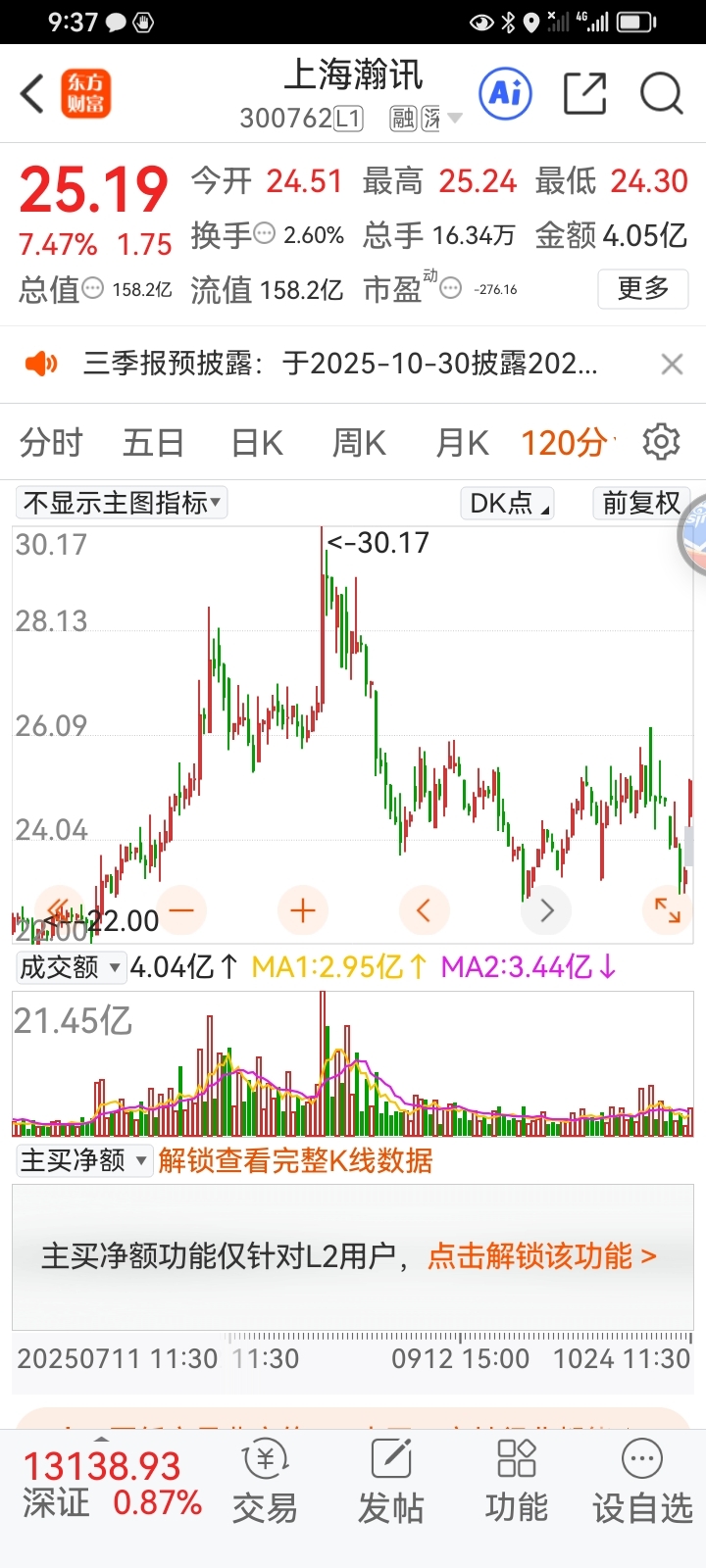 $上海瀚讯(SZ300762)$ 昨天跌得我生气了,弄了满仓