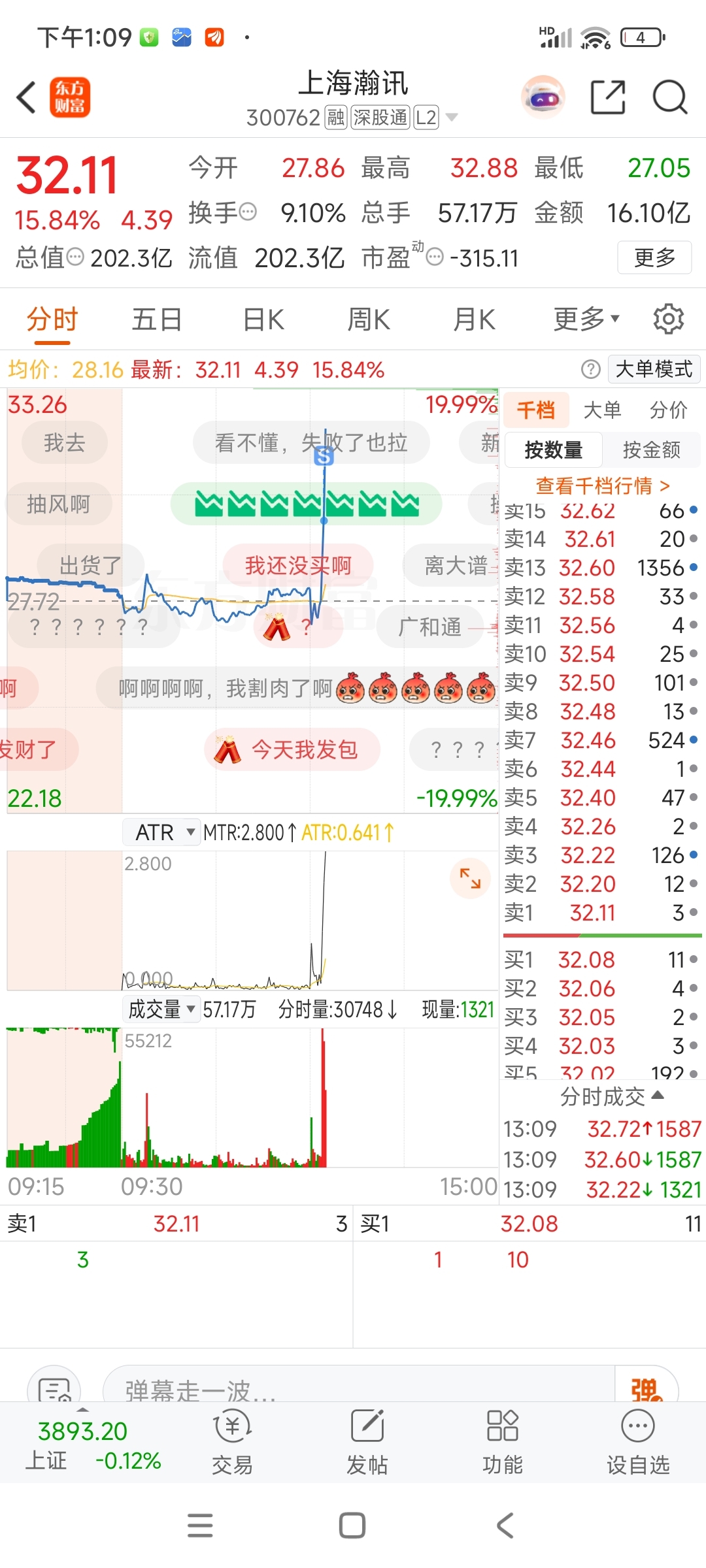 $上海瀚讯(SZ300762)$ 这个神经病股。。。卖飞了