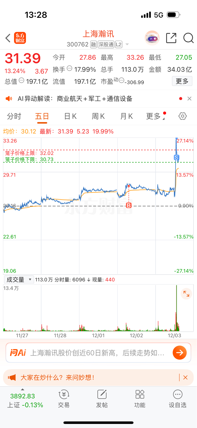 $上海瀚讯(SZ300762)$ 感谢主力 谢谢您!