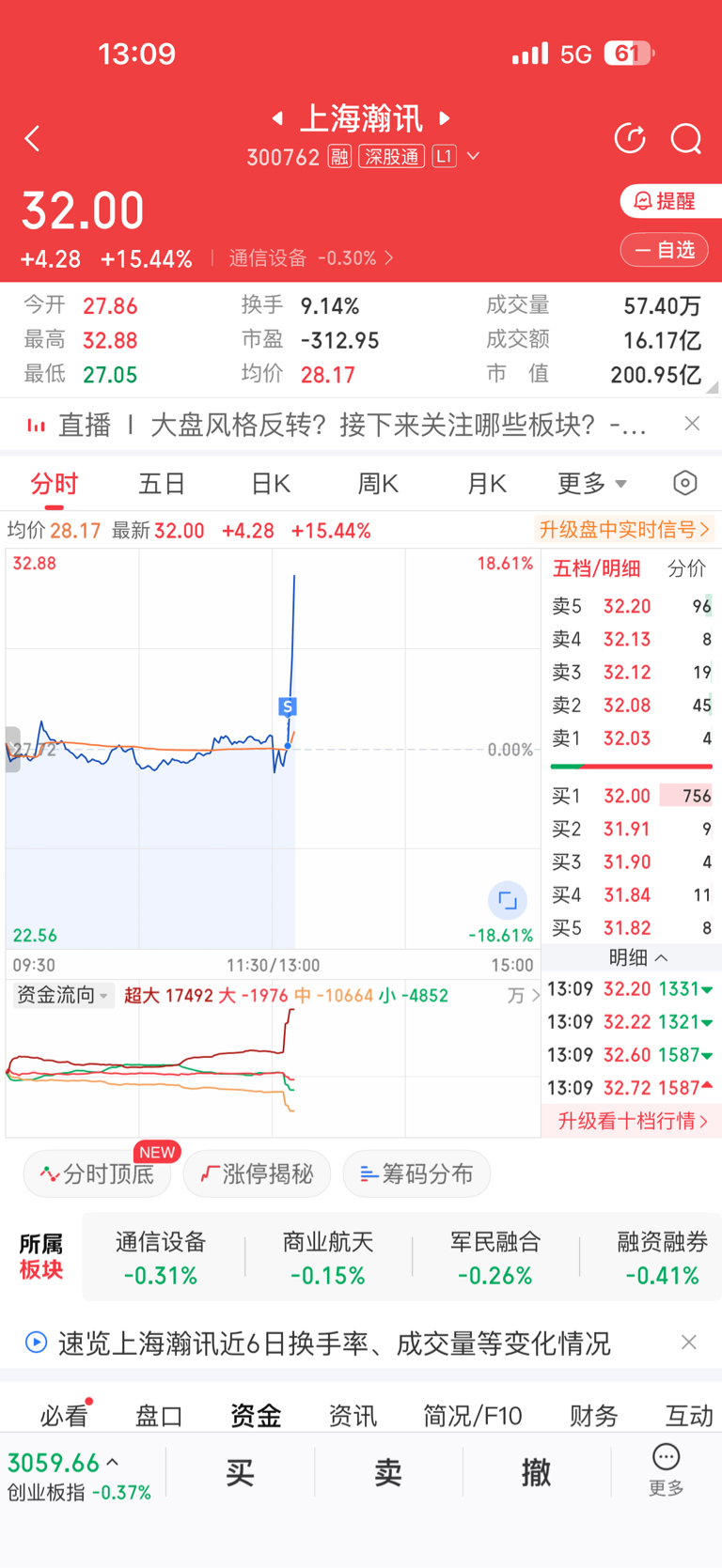 $上海瀚讯(SZ300762)$ 有没有跟我一样的