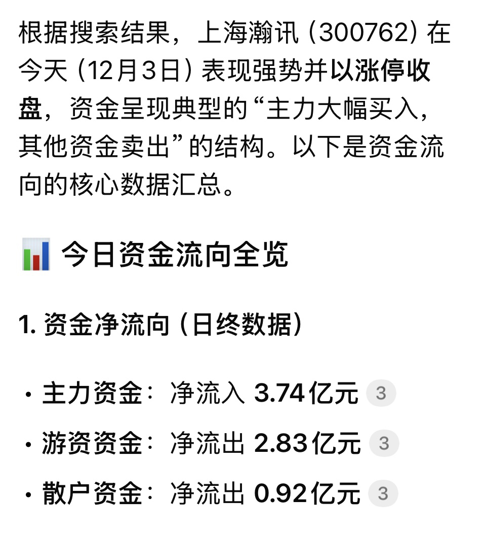 $上海瀚讯(SZ300762)$ 主力资金净流入,散户游资流出。