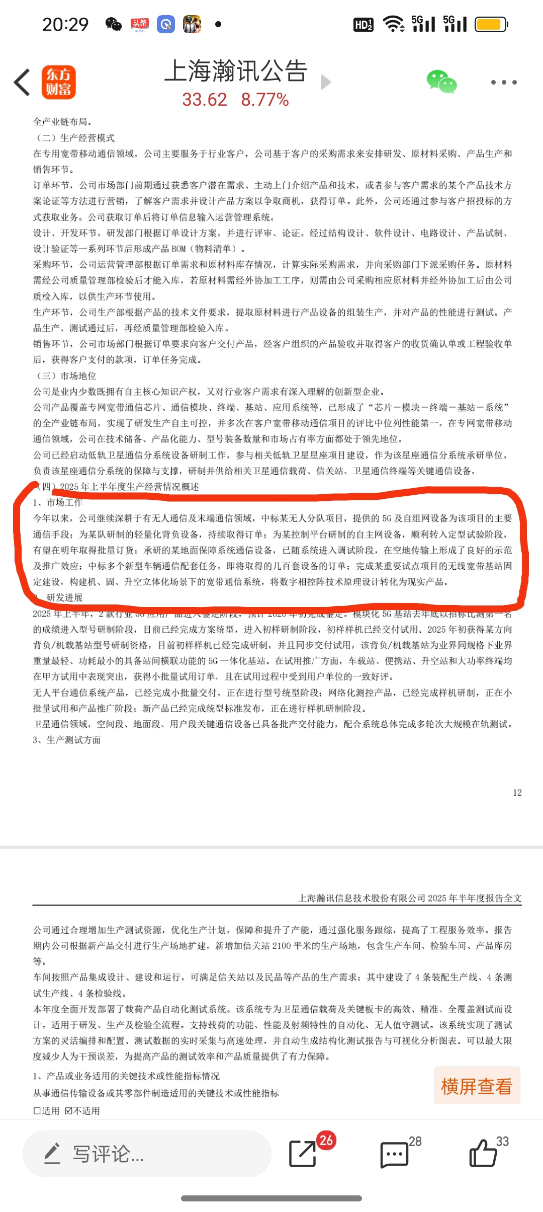 $上海瀚讯(SZ300762)$ 都看看半年报,深耕无人通讯,中标无人中队