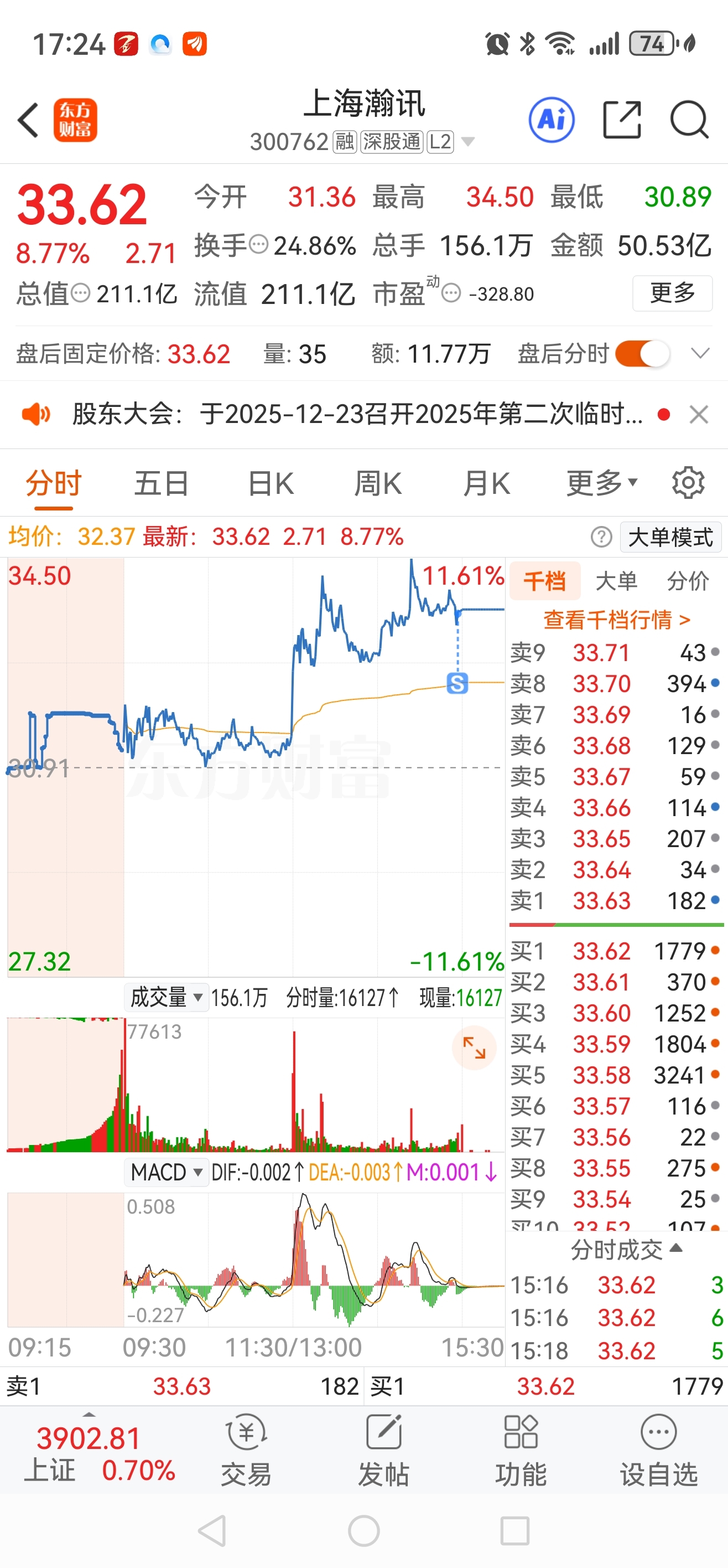 $上海瀚讯(SZ300762)$ 是不是卖飞了?