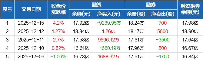 上海瀚讯:融资净偿还9239.95万元,融资余额17.92亿元(12-15)