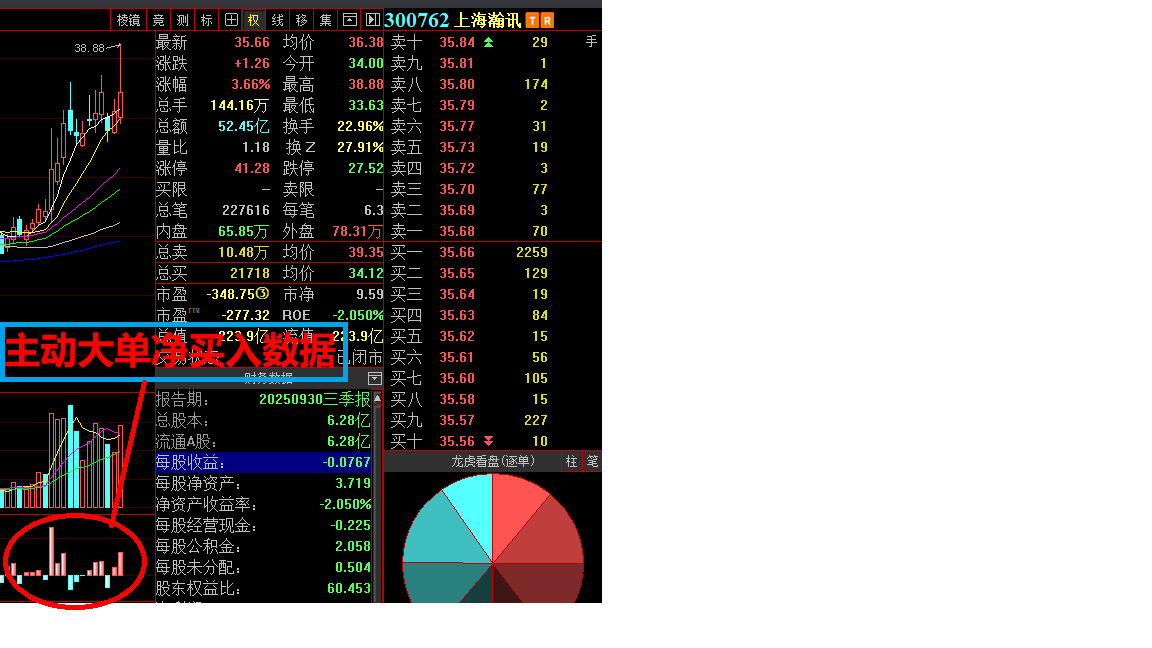 今天截止收盘的上海瀚讯高精度主动大单、逐笔大单、委托成交大单数据图,供各位大佬研