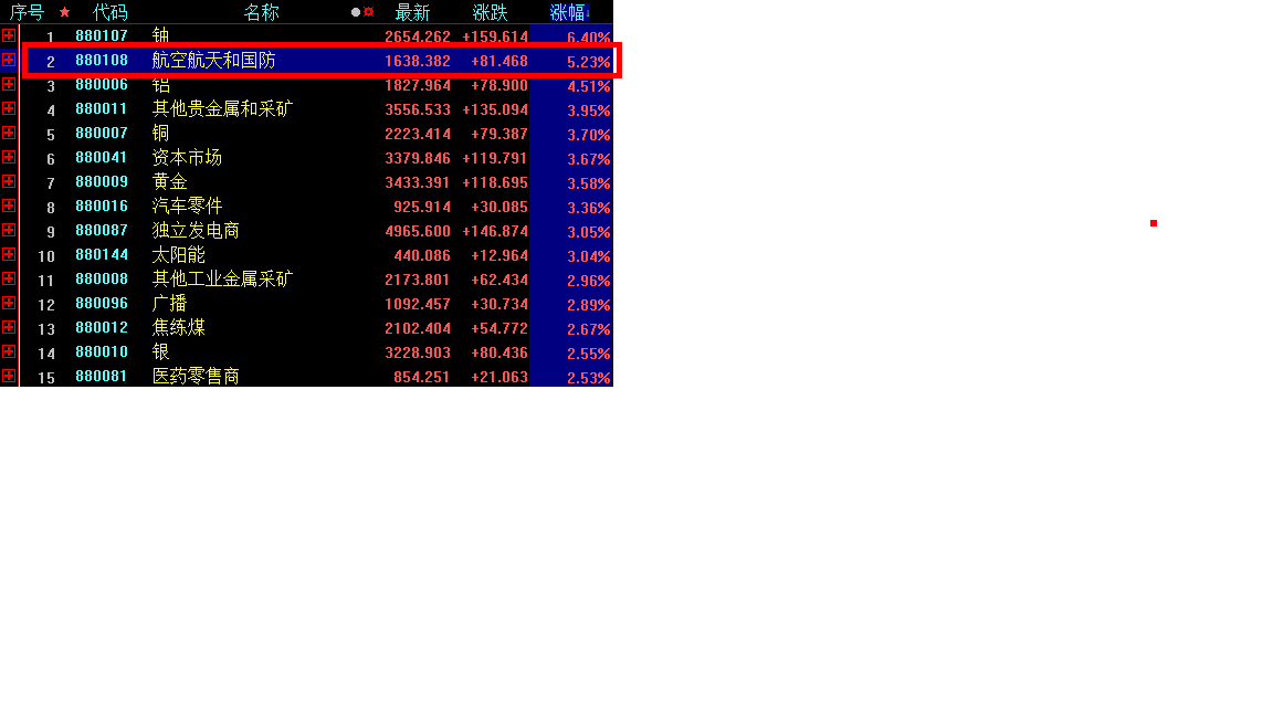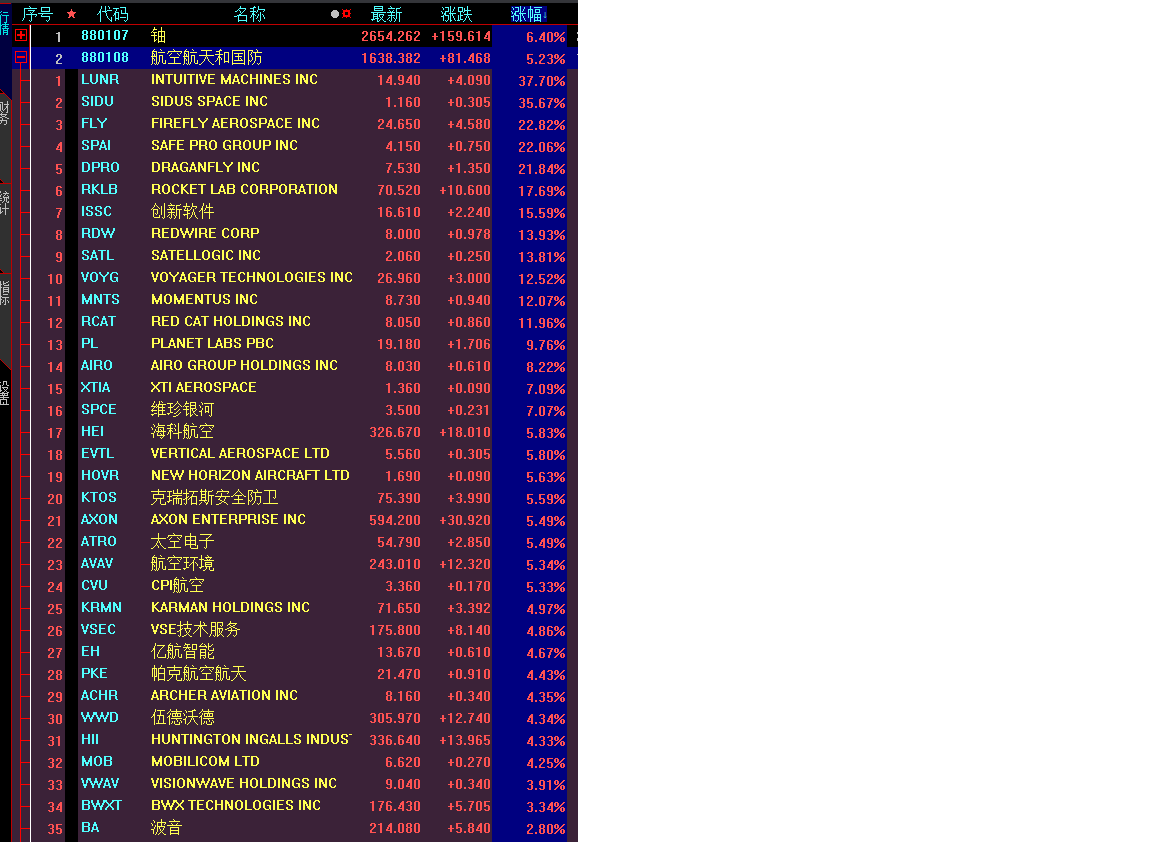 本周五美国股市航天航空和国防板块居涨幅第2名,涨幅达5.23%,及板块个股涨幅排