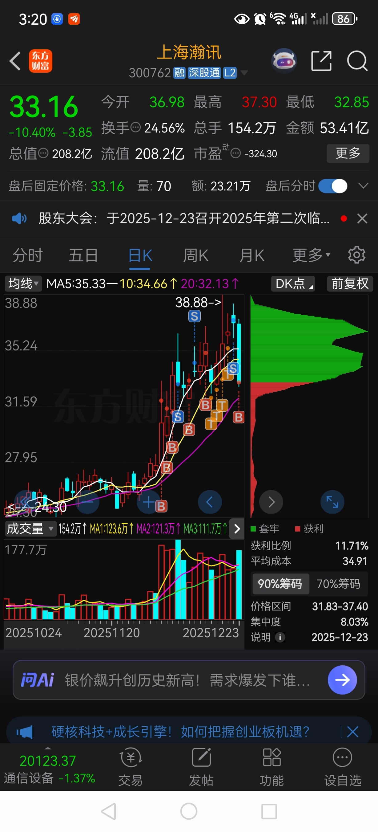 $上海瀚讯(SZ300762)$ 卖在一致,买在分歧。