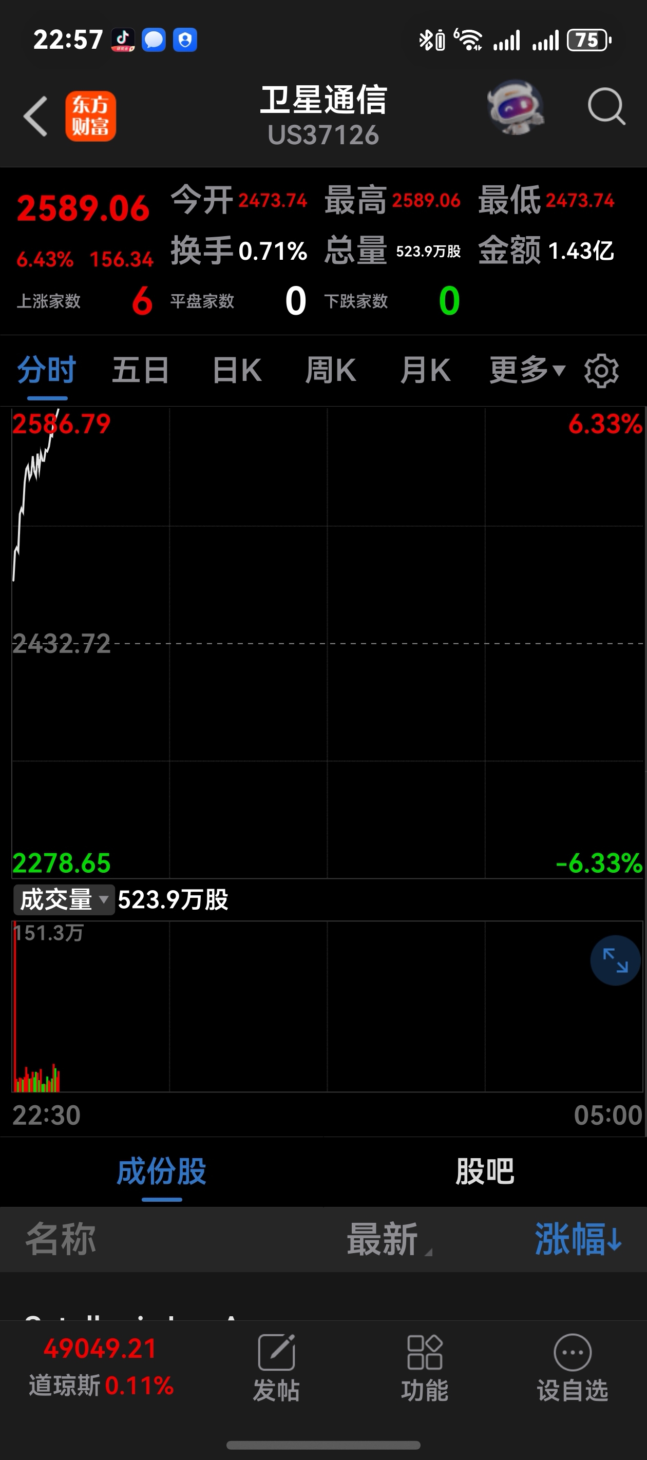 $上海瀚讯(SZ300762)$ 美股卫星通信板块暴涨!