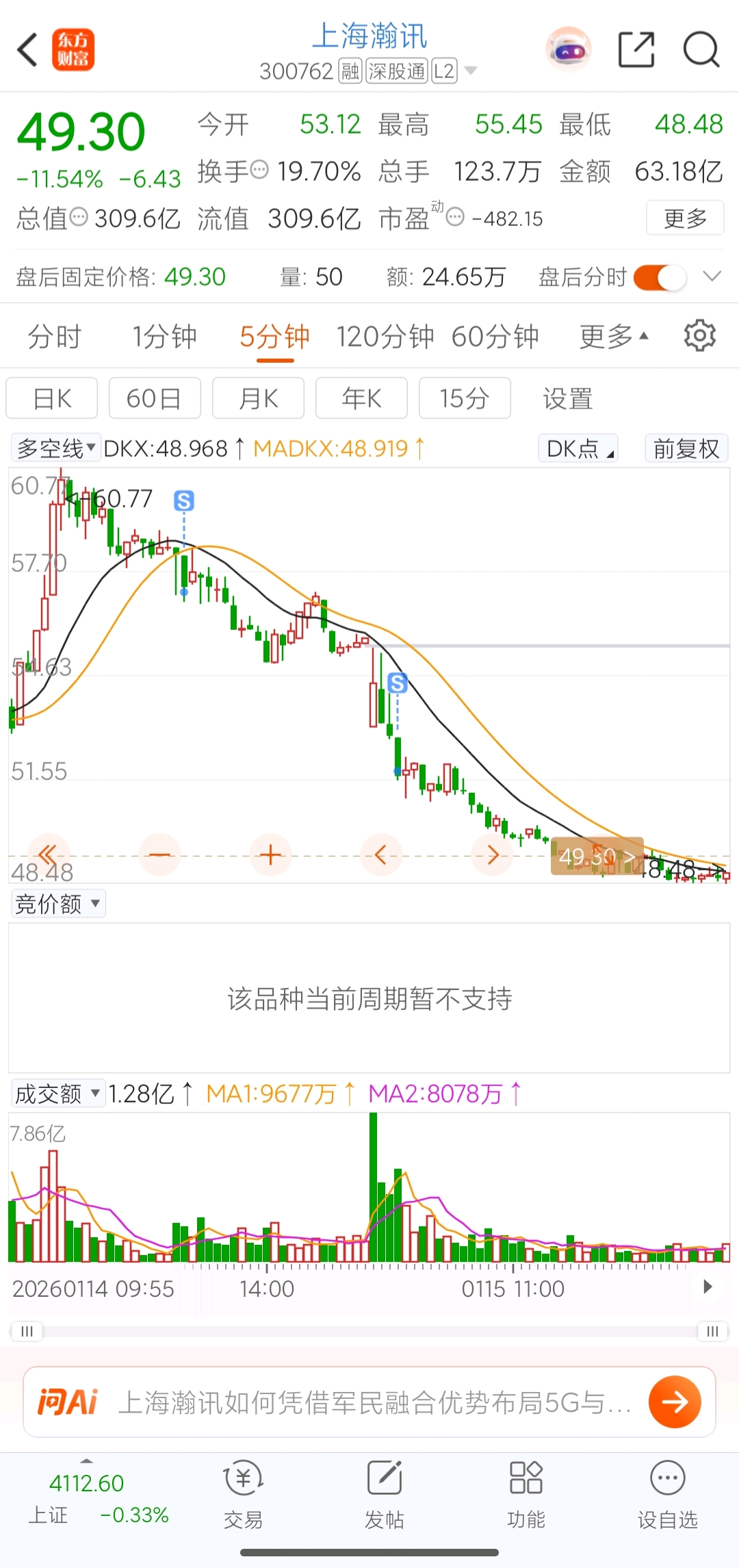 $上海瀚讯(SZ300762)$ 贪心惹的祸,手里有票很难克服,本来航空就已经隔了一支,昨天看这支竞价强势,开盘直接仓位推满了,下午一则消息出来,直接大指数直线下,意识到不对被迫减仓,早上有几分钟盈利出局的机会,又是贪心作祟,舍不得卖,被迫负七一把割了。做其他票,基本上都赚了,没忍住进航天这趟水了,三天回到解放前。 短线这条不归路,追高必死