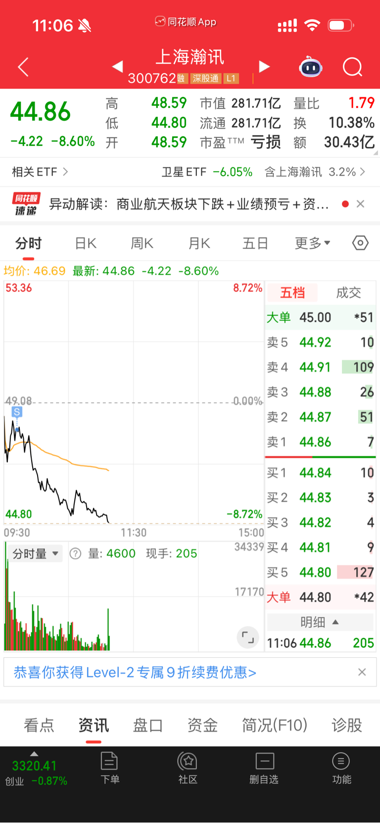 $上海瀚讯(SZ300762)$ 上周追高重仓吃它 1 个点,还好跑得快差点要老命