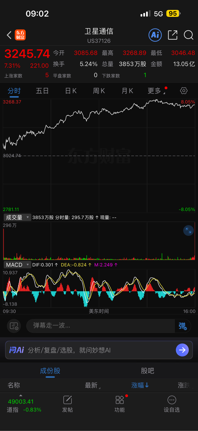 $上海瀚讯(SZ300762)$ 美股商业航天卫星互联网又出大利好了,卫星互联网爆拉7.31%,昨天卖飞了,今天开盘接回来
