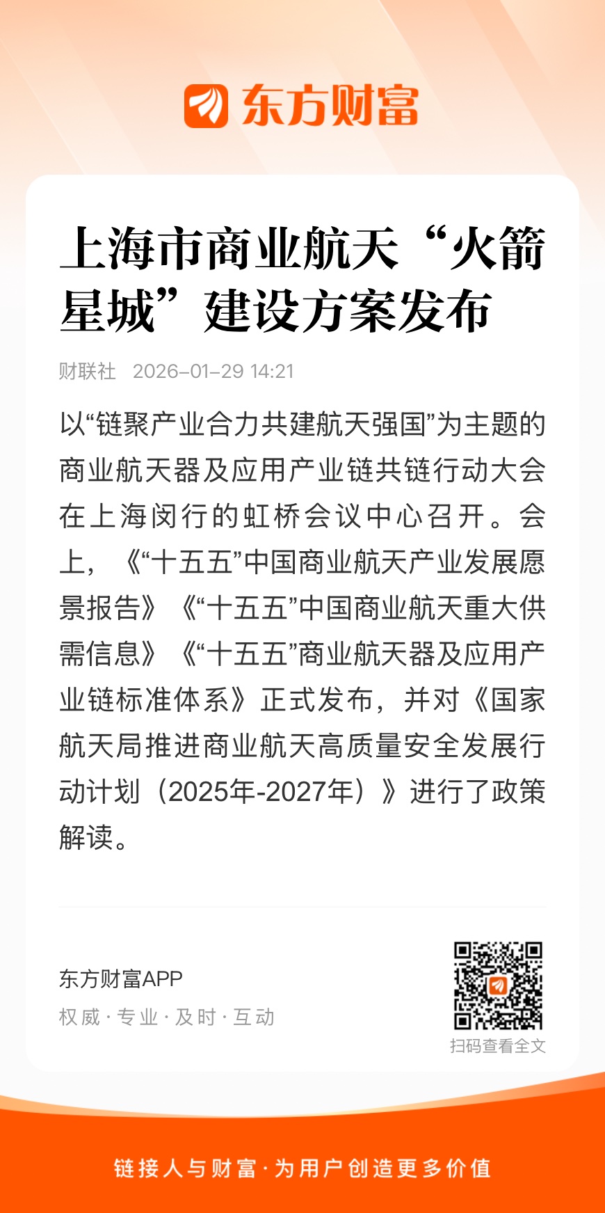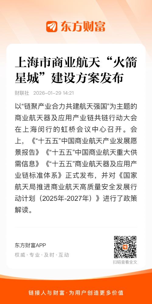 以“链聚产业合力 共建航天强国”为主题的商业航天器及应用产业链共链行动大会在上海闵行的虹桥会议中心召开。会上,《“十五五”中国商业航天产业发展愿景报告》《“十五五”中国商业航天重大供需信息》《“十五五”商业航天器及应用产业链标准体系》正式发布,并对《国家航天局推进商业航天高质量安全发展行动计划(2025年-2027年)》进行了政策解读。大会现场,上海市商业航天“火箭星城”建设方案正式发布,并对上海市及闵行区商业航天政策进行宣介。