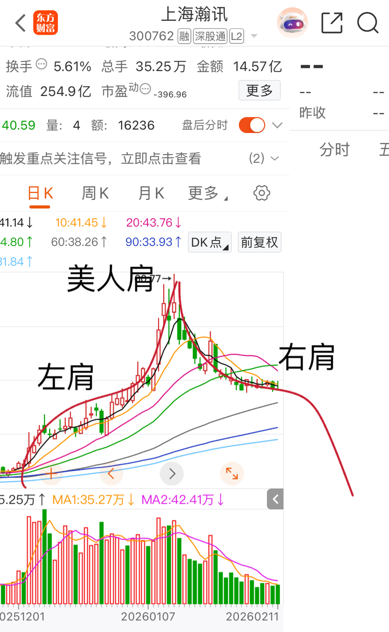 $上海瀚讯(SZ300762)$ 标准下降美人肩走势