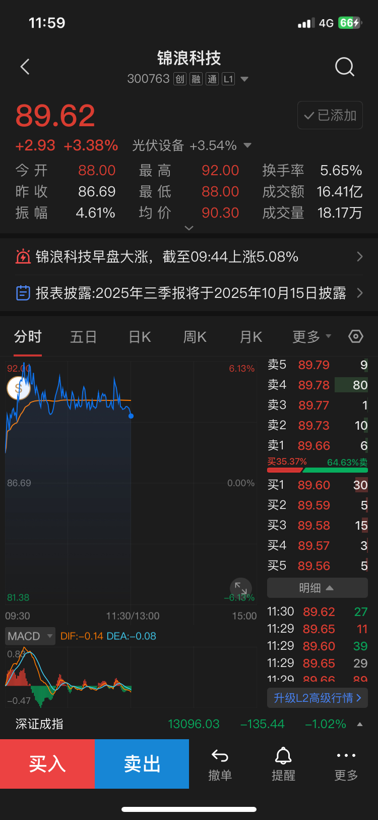 $锦浪科技(SZ300763)$ 昨天负六个点入的,今天正五个点跑路卖早了一点,有几个点盈利也可以了!其实可以博弈一下今天晚上的三季报!看看下午给不给机会!