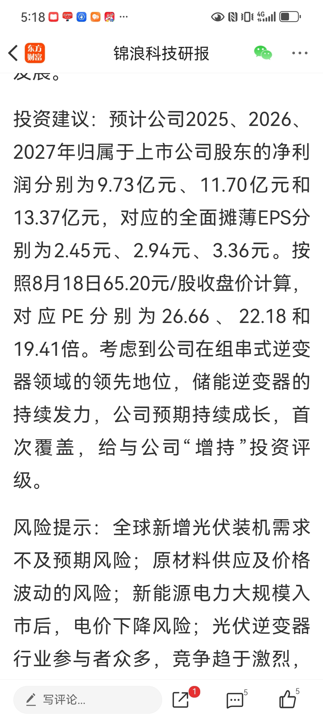 $锦浪科技(SZ300763)$ 券商研报预计公司2025、2026、2027年归属于上市公司股东的净利润分别为9.73亿元、11.70亿元和13.37亿元,