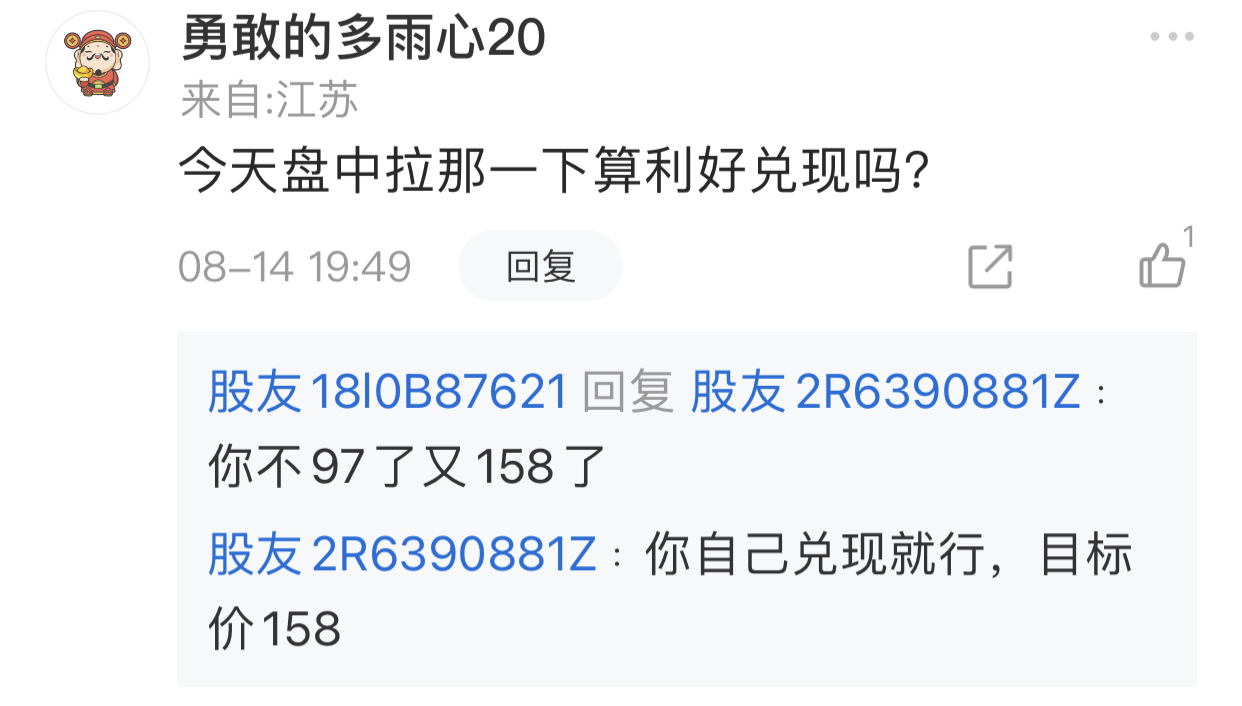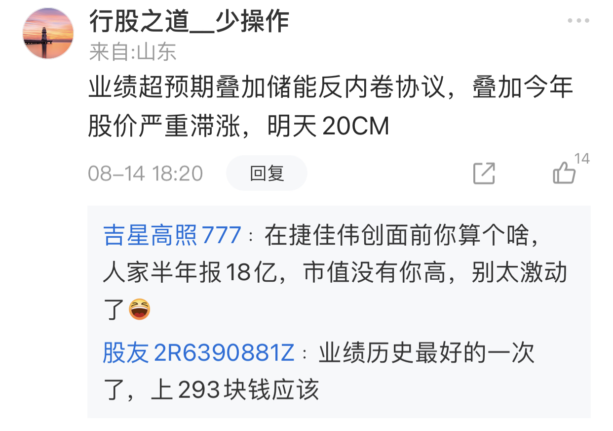 看看这条东西8月份怎么啡的,2季度业绩一出每个贴下面评论明天20cm涨停,现在三