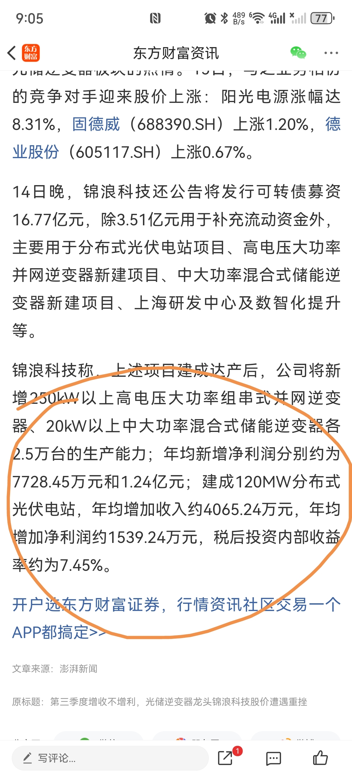 $锦浪科技(SZ300763)$ 怕你误会业绩不行,都名牌了,发债是为了提高逆变器和分布式光伏电站的产能,上线后年净利增加2个多亿,相当于2024年净利增长30%,通常理解肯定是商品供不应求才需要上产线