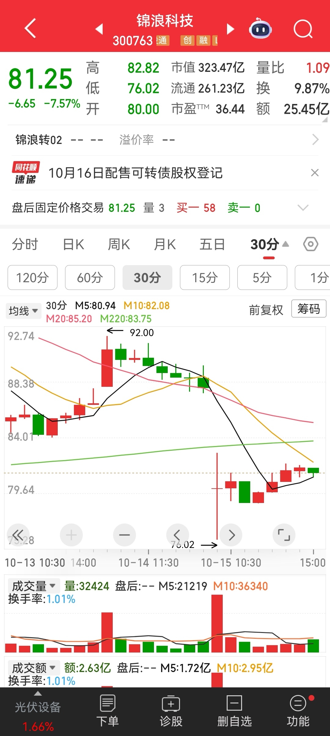 但是我个人觉得值得注意的是:今日换手率9.87%,前30分钟换手率就高达4.56%(占全天成交量46.2%)且收了十字星,这说明什么问题?请哪位技术高手帮助解答解答呗。
