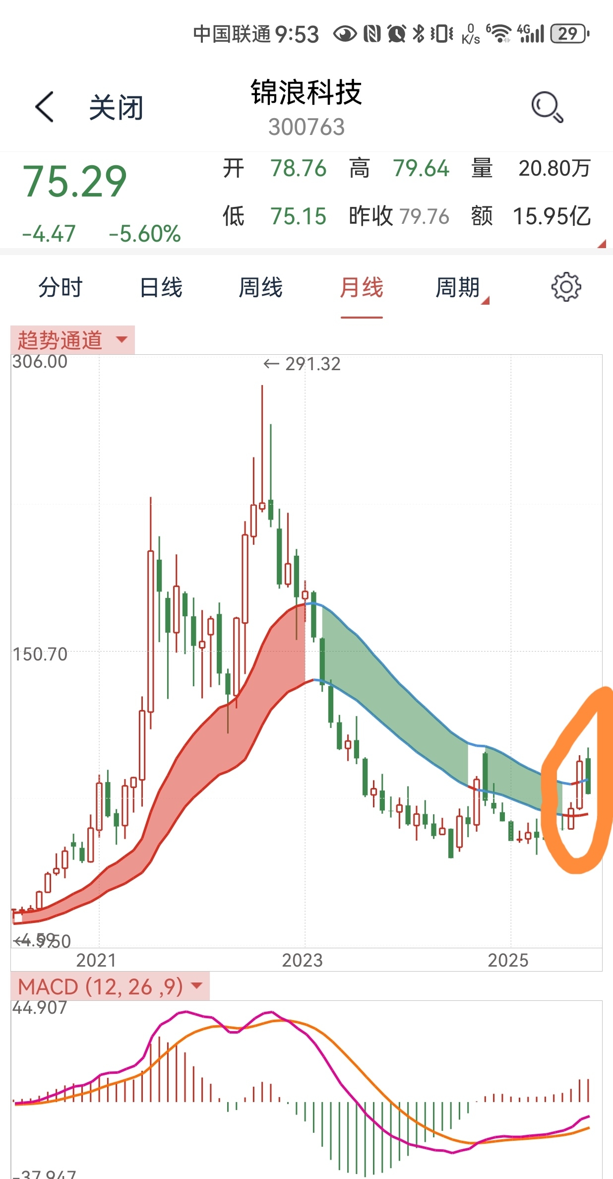 还有我说浪浪在板块里面算强的,给你们看下固的,他月线趋势上轨都没突破。