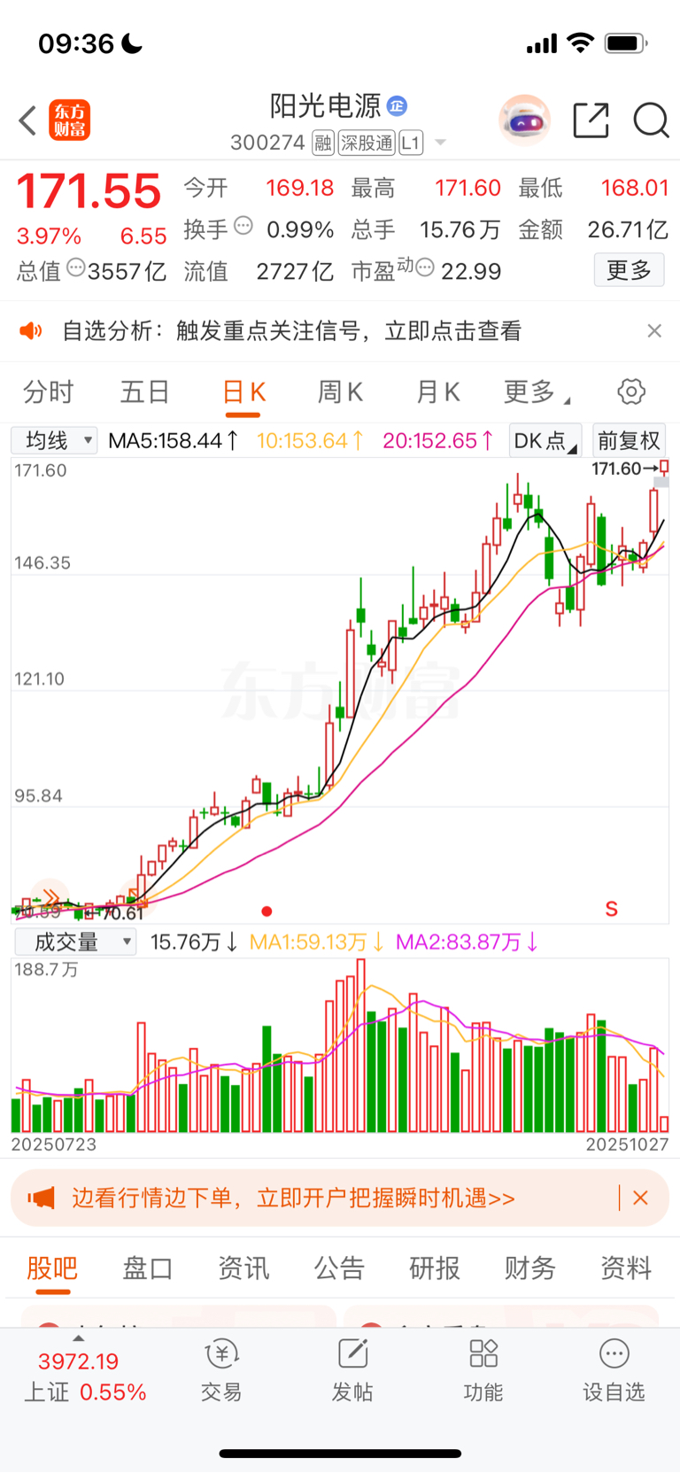 $锦浪科技(SZ300763)$ 哇嗯,阳光电源173了。