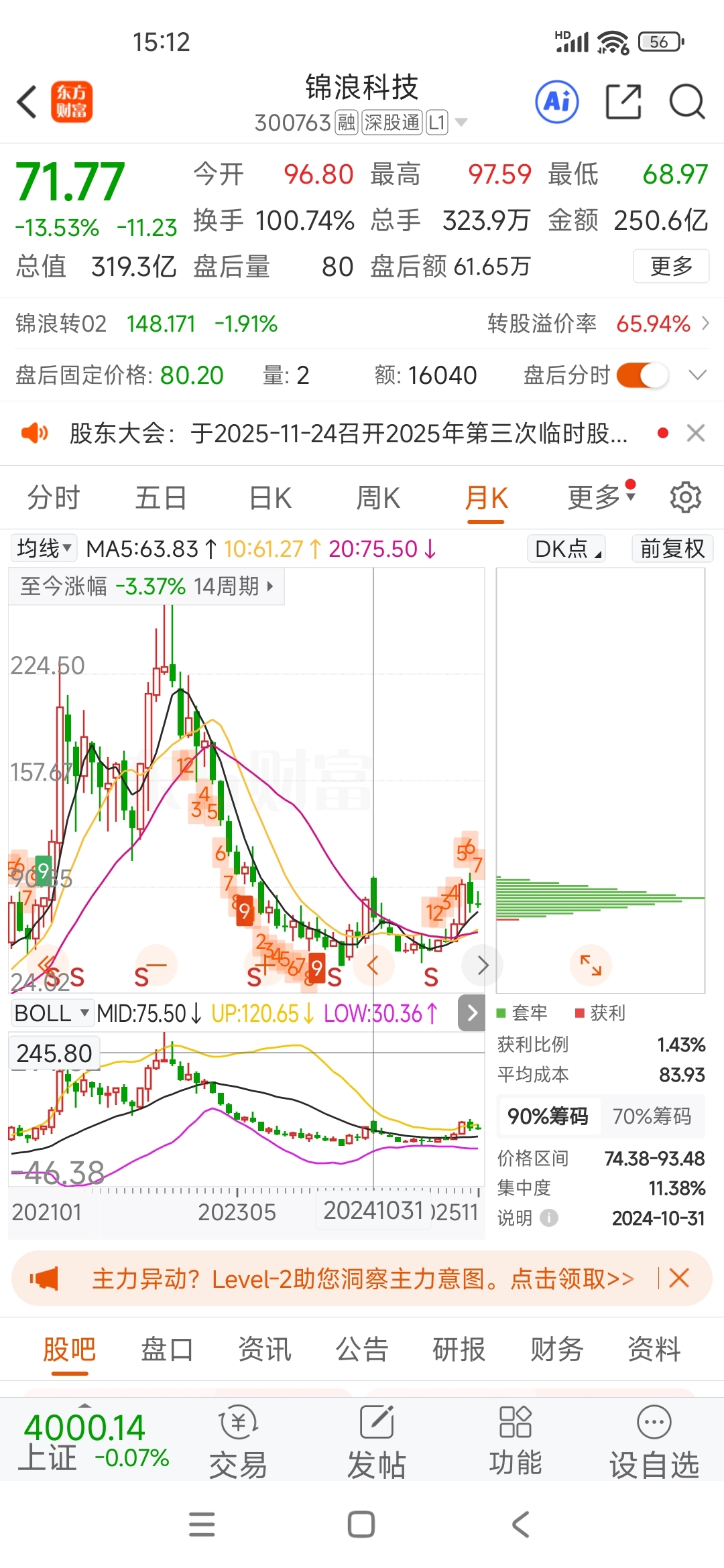 $锦浪科技(SZ300763)$ 和去年6月起来那波走的k线对称了