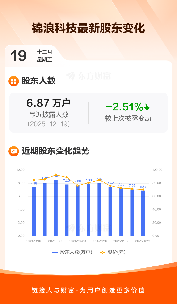 锦浪科技:截至12月19日最新股东户数6.87万户,较上期减少2.51%
