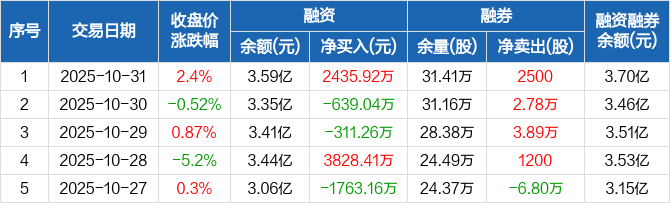新诺威:融资净买入2435.92万元,融资余额3.59亿元(10-31)