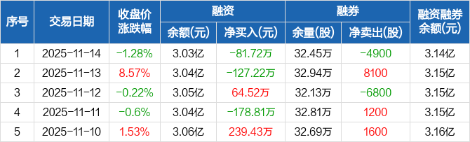 新诺威:融资净偿还81.72万元,融资余额3.03亿元(11-14)