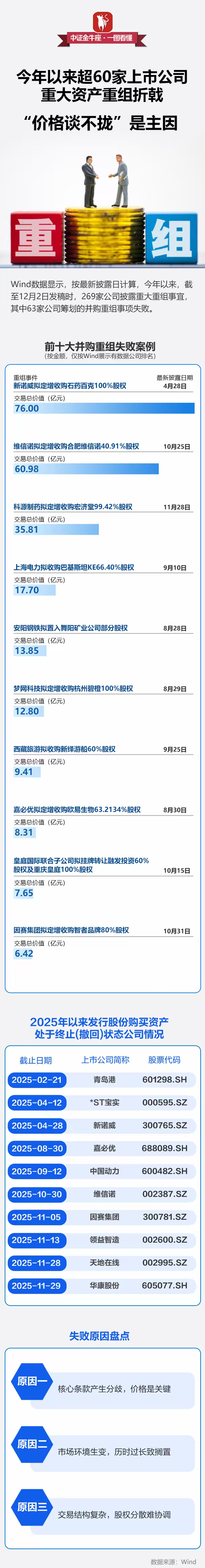 【一图看懂】今年以来超60家上市公司重大资产重组折戟 “价格谈不拢”是主因