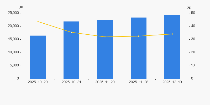 自2025年10月20日以来,公司股东户数连续4期上涨,截至目前增幅为48.13%。2025年10月20日至2025年12月10日区间股价下降21.81%。