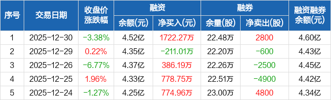 新诺威:融资余额4.52亿元,创近一年新高(12-30)