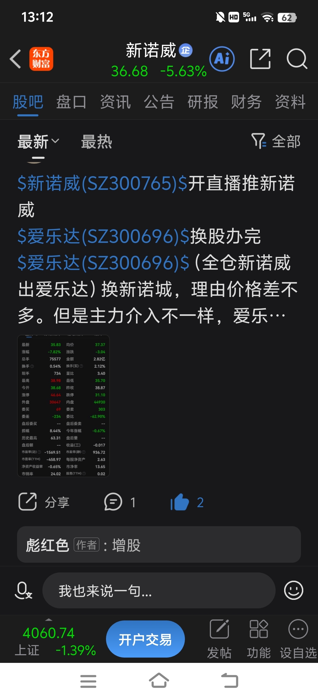 温馨提示: 1.根据《证券法》规定,禁止编造、传播虚假信息或者误导性信息,扰乱证券市场;2.用户在本社区发表的所有资料、言论等仅代表个人观点,与本网站立场无关,不对您构成任何投资建议。用户应基于自己的独立判断,自行决定证券投资并承担相应风险。《东方财富社区管理规定》