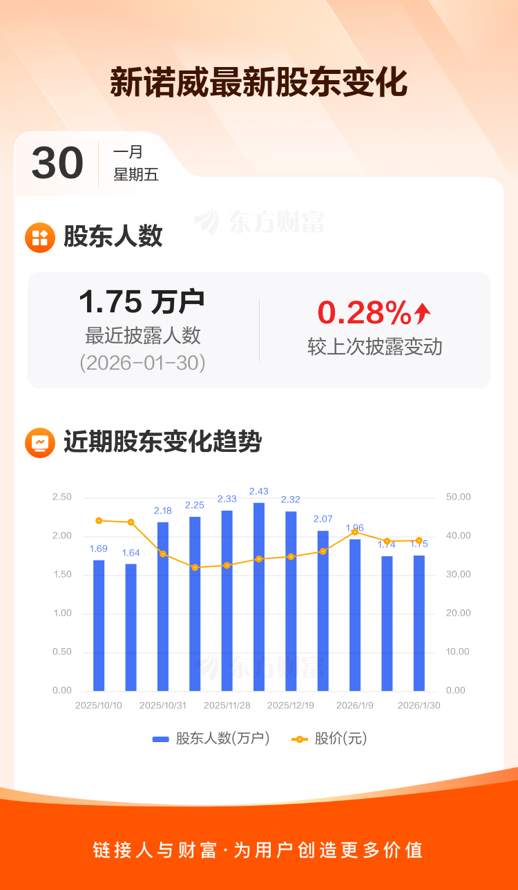 新诺威:截至1月30日最新股东户数1.75万户,较上期增加0.28%